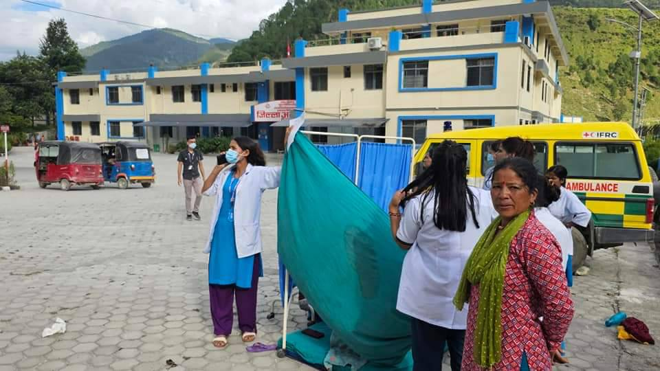 बझाङ । बझाङमा लगातार भूकम्पपछि व्यथा लागेकी एक गर्भवती महिलालाई अस्पताल प्रांगणमै सुत्केरी गराइएको छ । व्यथा लागेपछि जिल्ला अस्पताल बझाङमा भर्ना भएकी महिलालाई अस्पतालको आँगनमा पर्दा लगाएर सुत्केरी गराइएको हो । भूकम्पछि अस्पतालभित्र असहज भएपछि उनलाई बाहिर ल्याइएको थियो ।