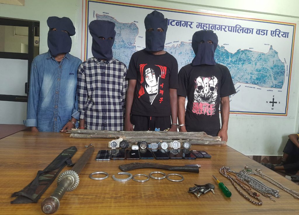 ‘ग्याङफाइट’का लागि हतियार बोकेर हिँड्ने मोरङको कटहरी गाउँपालिका–४ का १८ वर्षीय शेखकवि अली, सुनसरीको बर्जु गाउँपालिका–६ का १८ वर्षीय विजय चौधरी, १९ वर्षीय राहुल दास, ललनकुमार मेहता, सञ्जय मेहता र प्रेम चौधरी पक्राउ परेका छन् ।