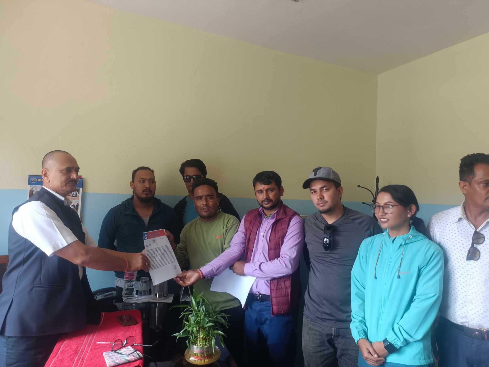 युवा संघ कास्कीका अध्यक्ष पान बहादुर जि सि को नेतृत्वमा जिल्ला प्रशासन कार्यालय कास्कीका सहायक प्रमुख जिल्ला अधिकारी गङ्गा बहादुर क्षेत्रीलाइ ज्ञापनपत्र बुझाउदै घाइते र पीडितहरूको तत्काल उद्दार गरि सकुशल नेपाल ल्याउने पहल गर्न आग्रह गर्दै ज्ञापनपत्र बुझाएको हो ।