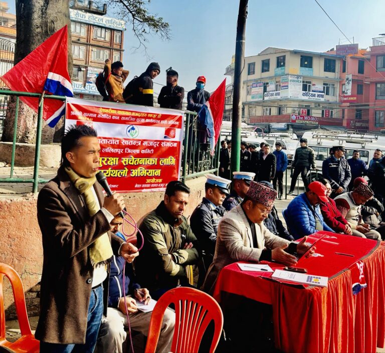 ललितपुर । दिनानुदिन बढिरहेको सडक दुर्घटनाबाट देश आक्रान्त बनिरहेकोबेला सडकमै काम गर्ने यातायात मजदुरहरु पीडित नहुने कुरै भएन । अझ यातायात मजदुरहरुलाई नै दुर्घटनाको कारक बनाउने र दुर्घटनापछि मजदुरहरु भौतिक रुपमै असुरक्षित हुने अवस्था आएकाले यातायात मजदुरहरु स्वयमले सडक दुर्घटना न्युनिकरण अभियानको थालनी गरेकाछन् ।