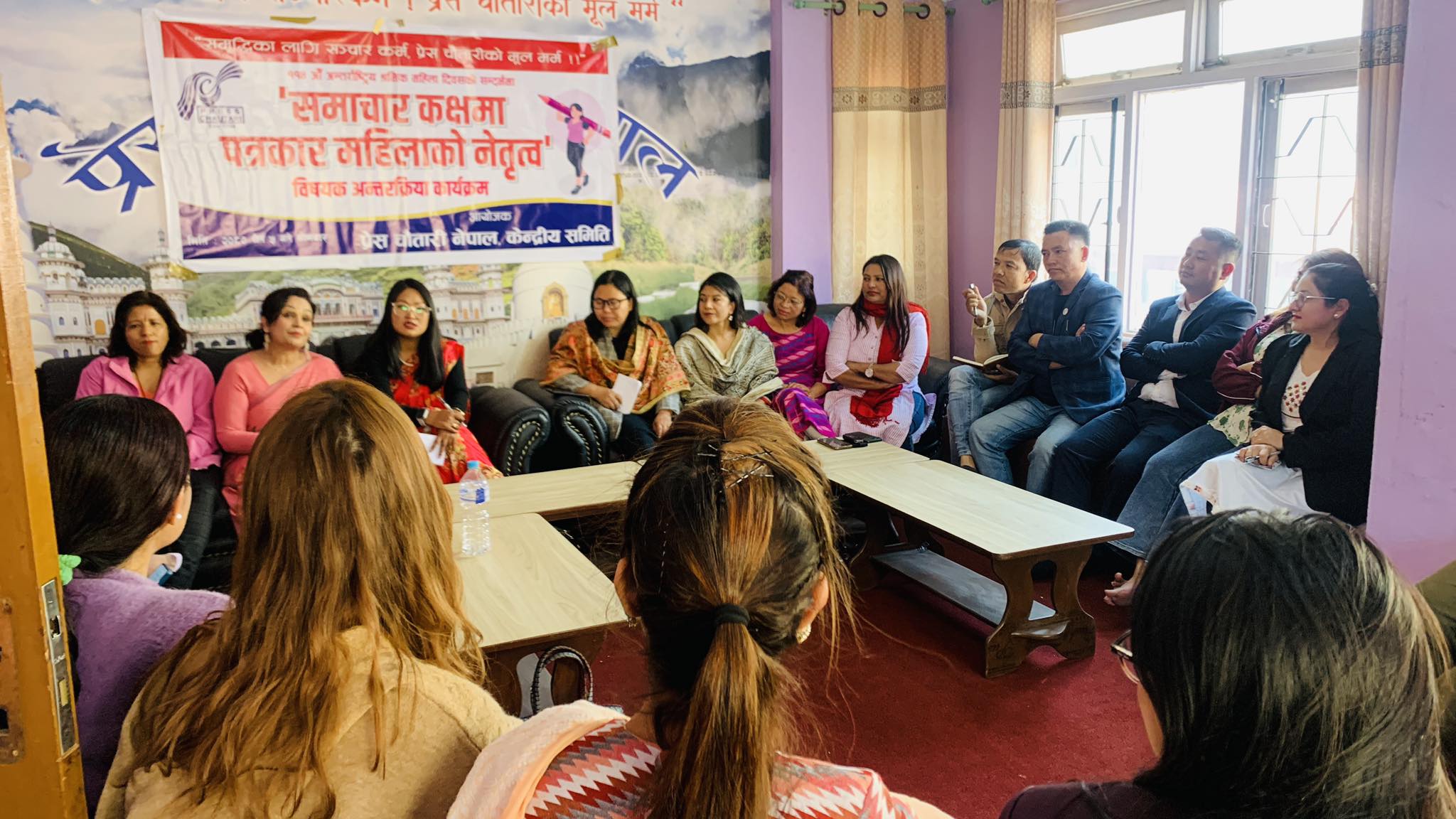‘हामी अधिकारका लागि लड्न तयार छौँ, हाम्रा अधिकार अझै पूरा भएका छैनन्,’ उहाँले भन्नुभयो, ‘कसरी पत्रकार महिलालाई नेतृत्वमा पुर्याउन सकिन्छ भनेर हामीले बहस गर्दै आएका छौँ । हामीले पत्रकारितामा पत्रकार महिलालाई टिकाउने र बिकाउने बनाउनु पनि चुनौति छ । त्योसँगै समाचार कक्षमा हुने हिंसा न्युनिकरण त्यत्तिकै आवश्यक छ ।’ उहाँले महिलाले महिलाको नेतृत्व स्वीकार गर्न नसक्दा पनि समस्या भएको उल्लेख गर्नुभयो । ‘हामी जाति, वर्ग भन्दा पार्टी भन्दा माथि उठ्नुपर्छ,’ उहाँले भन्नुभयो । प्रेस युनियनका उपाध्यक्ष नकुल अर्यालले महासंघले सुत्केरी विदामा बसेका महिलालाई निस्कृय भनेर शुद्धीकरणमा परेको विषय गम्भीर भएको उल्लेख गर्नुभयो । समाचार कक्षामा महिला नेतृत्व नहुँदा वाइलाइन पनि कम भएको भन्दै त्यसले नेतृत्व तहमा पुग्न पनि समस्या भएको उल्लेख गर्नुभयो । उहाँले त्यो पुरुषवादी चिन्तनले मात्रै नभएको पनि उल्लेख गर्नुभयो । महिला हुन भन्दा महिलावादी हुन मुस्किल छ ।