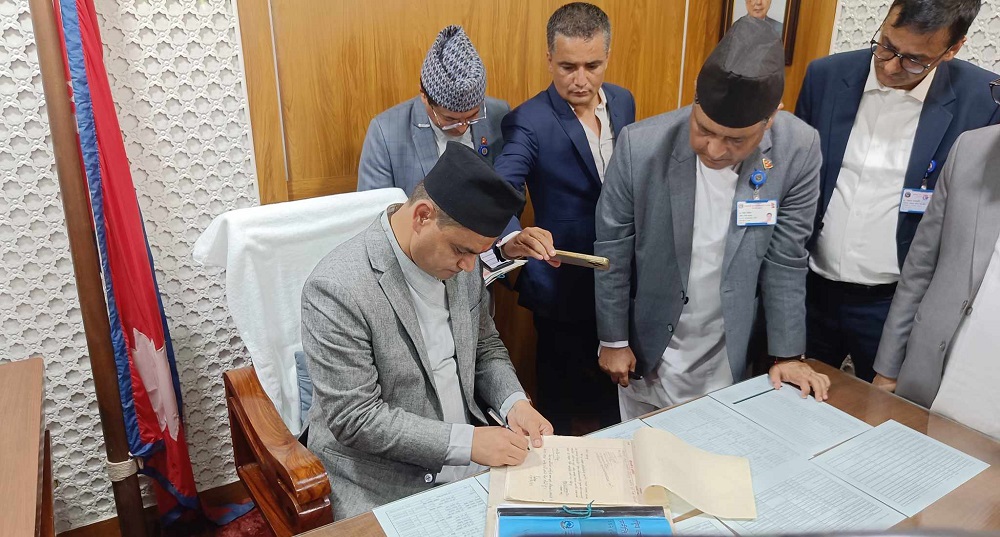 काठमाडौं । स्वास्थ्य मन्त्री प्रदीप पौडेलले कार्यभार सम्हालेका छन् । सोमबार स्वास्थ्य तथा जनसंख्या मन्त्रालय गएर कार्यभार सम्हालेका हुन् । मन्त्री पौडेलले राष्ट्रिय क्यान्सर रणनीति २०२४–२०३० स्वीकृत गर्ने पहिलो निर्णय गरेका छन् । उनले पहिलो पटक मन्त्री भएको भन्दै सबै सँग सल्लाह गरेर काम गर्ने बताए ।