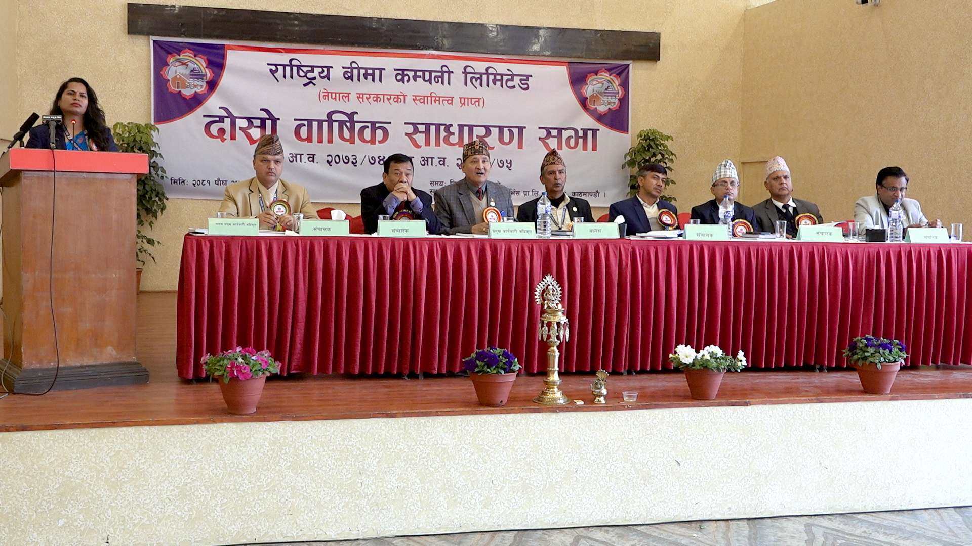 काठमाडौं । राष्ट्रिय बिमा कम्पनीको दोस्रो वार्षिक प्रतिवेदन सार्वजनिक भएको छ। बुधबार एक विशेष कार्यक्रमकाबीच बिमा कम्पनीले आफ्नो वार्षिक साधारण सभामा दोस्रो वार्षिक प्रतिवेदन सार्वजनिक गरेको हो । दोस्रो वार्षिक प्रतिवेदनमा ६ वटा सामान्य प्रस्तावहरु पारित भएका छन् ।