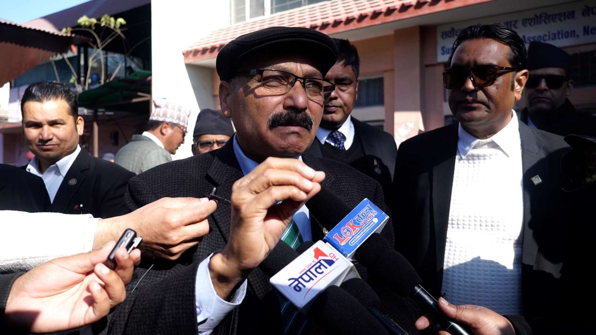 काठमाडौं । वरिष्ठ अधिवक्ता दिनेश त्रिपाठीमाथि भएको आक्रमणको विरोधमा कानून व्यवसायीहरूले आइतबार कालोपट्टी बाँधेर प्रदर्शन गरेका छन् । सर्वोच्च अदालत बार एशोसिएशनको आव्हानमा बारका सदस्यले हातमा कालोपट्टी बाँधेर विरोध जनाएका हुन् ।