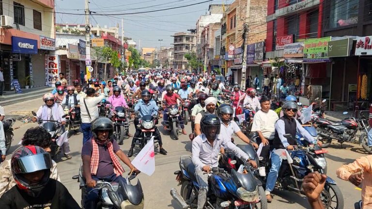 करीब पाँच हजारको संख्यामा जिल्ला अदालतस्थित पार्टी कार्यालयबाट निकालिएको मोटरसाइकल र्याली नगर परिक्रमा गरी तिरहुतिया गाछी पुगेर समापन भएको थियो ।