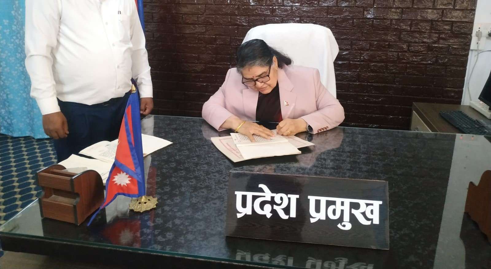 प्रदेश प्रमुख भण्डारीले मधेशमा पर्यटनको विकास र प्रवद्र्धन गर्ने सम्बन्धमा व्यवस्था गर्न बनेको विधेयक, प्रदेश कृषि विकास सम्बन्धमा व्यवस्था गर्न बनेको विधेयक र प्रदेश बालअधिकार सम्बन्धी ऐन, २०७७ लाई संशोधन गर्न बनेको विधेयक प्रमाणिकरण गरेकी हुन् ।