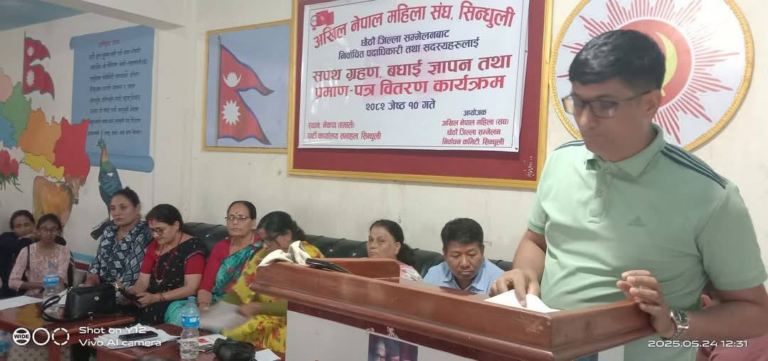 सिन्धुलीः एमाले सम्बद्ध अखिल नेपाल महिला संघ सिन्धुलीका नब निर्वाचित पदाधिकारीहरुले आज पद तथा गोपनियताको सपथ लिएका छन् ।