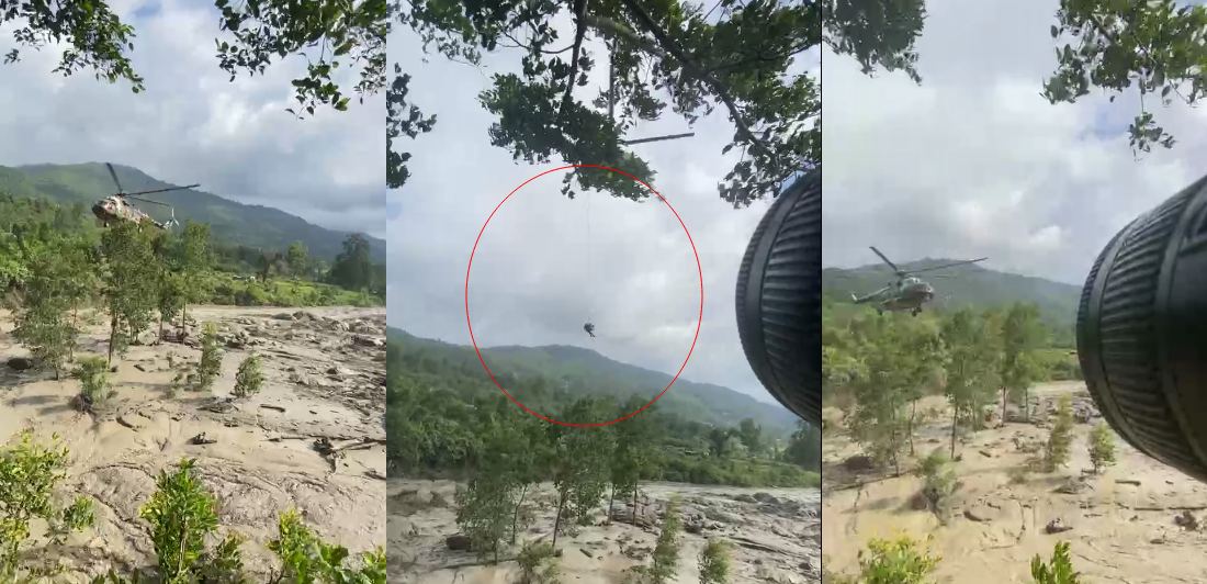 काठमाडौं । नुवाकोटमा त्रिशूली नदीमा फसेका दुई जनालाई हेलिकप्टरबाट उद्धार गरिएको छ । अविरल वर्षका कारण नुवाकोटको त्रिशूली बजार नजिक रहेको स्थानमा सोमबार राति रुखमा चढेर बसेका दुई जनालाई हेलिकोप्टरबाट उद्धार गरिएको हो ।
