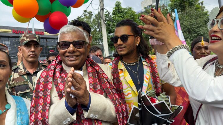 काठमाडौं । यौनिक तथा लैङ्गिक अल्पसंख्यक समुदायको अधिकार र पहिचानको माग गर्दै आइतबार काठमाडौंमा गाईजात्रा ‘प्राइड परेड’ सम्पन्न भएको छ।