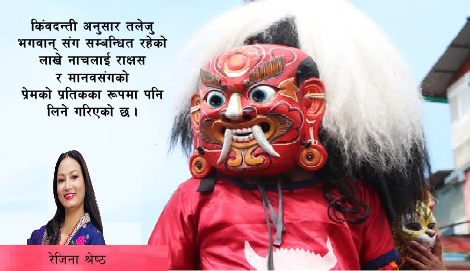 किंवदन्ती अनुसार तलेजु भगवान् सँग सम्बन्धित रहेको लाखे नाचलाई राक्षस र मानवसँगको प्रेमको प्रतिकका रूपमा पनि लिने गरिएको छ । ज्यापुको छोरी सँग भुतको गहिरो माँया प्रीति बस्दा भुत र मान्छे सँगको भावनात्मक सम्बन्ध जोड्ने उदेश्यले लाखे नाच थालिएको हो । यो तान्त्रिक विधि–विधानमा आधारित सांस्कृतिक अनुष्ठान भएकाले निश्चित विधि अनुसार गरिने चलन छ ।