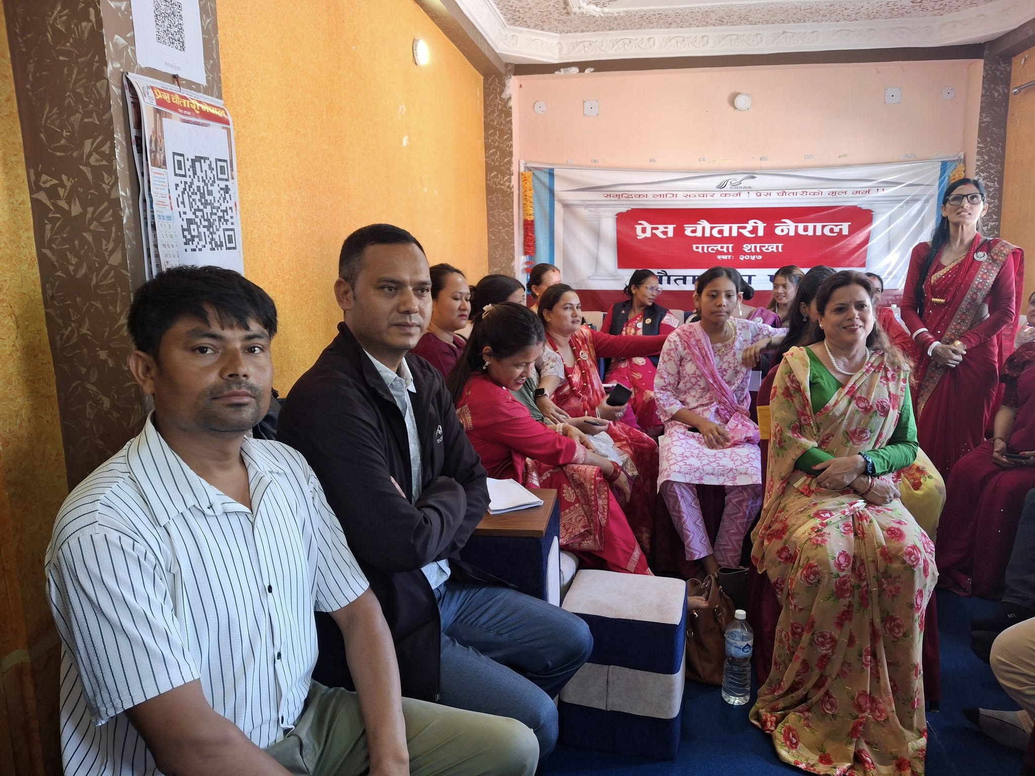 कार्यक्रममा पाल्पा जिल्लाका सञ्चार क्षेत्रमा सक्रिय विभिन्न संघ–संगठनमा आवद्ध महिला पत्रकारहरूको उल्लेख्य उपस्थिति रहेको थियो । तालिमपश्चात हरितालिका तीजको अवसरमा शुभकामना आदानप्रदान र दर खाने सांस्कृतिक जमघट समेत आयोजना गरिएको थियो ।