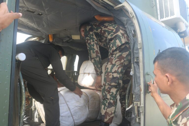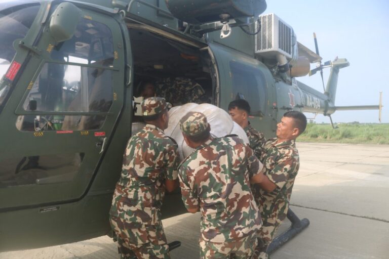 विराटनगर । इलाममा आएको बाढी-पहिरो प्रभावितका लागि कोशी प्रदेश मुख्यमन्त्री हिक्मतकुमार कार्की सक्रिय भई राहत कार्यमा फिल्डमै खटिएका छन्। आज बिहान नेपाली सेनाको हेलिकप्टरमार्फत माङ्सेबुङ र इलाम सदरमुकाम क्षेत्रमा प्राथमिक राहत सामग्री वितरण गरिएको छ।