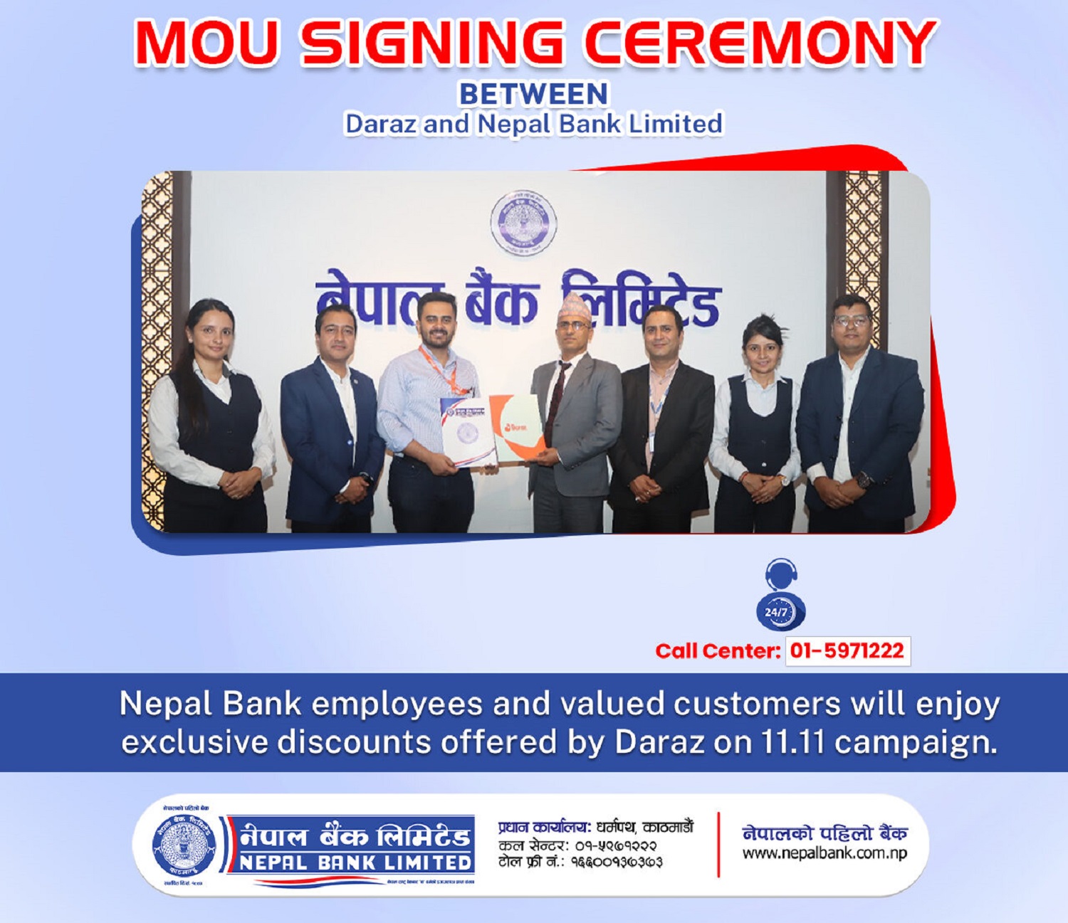 काठमाडौं । नेपालको पहिलो र विश्वासिलो बैंक नेपाल बैंक लिमिटेडले डिजिटल कारोबारलाई थप सहज र ग्राहकमैत्री बनाउन ई–कमर्स प्लेटफर्म दराज नेपालसँग भुक्तानी सेवा सम्झौता गरेको छ। सम्झौता अनुसार, नेपाल बैंकका ग्राहकहरूले दराजमार्फत अनलाइन किनमेल गर्दा आकर्षक छुट सुविधा पाउनेछन्। यो योजना २०८२ साल कार्तिक २५ देखि मंसिर ६ गतेसम्म (नोभेम्बर ११–२२, २०२५) लागू हुनेछ।