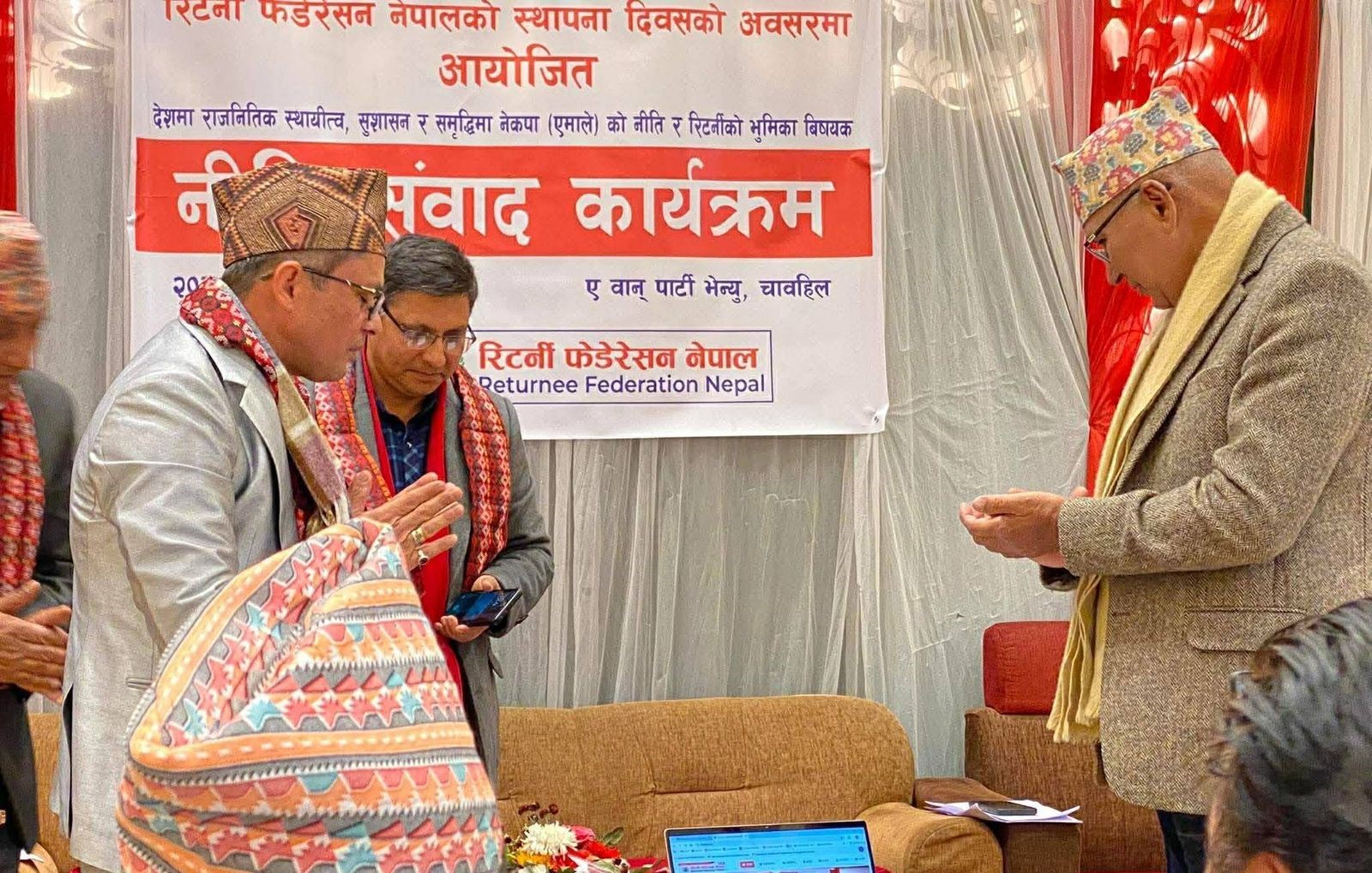 उनी विदेशबाट फर्केका पेशेवर र रिटर्नीहरुको पुँजी र सीपलाई देश विकासमा लगाउनुपर्नेमा जोड दिन्छन्। उनले उदाहरण दिँदै भने, नवयुग ईन्भेस्टमेन्ट जस्ता कम्पनी खोलेर रिटर्नी फेडेरेसनले सातै प्रदेशमा काम गर्नुपर्ने बताउँदै सरकारको निष्क्रियता खेदजनक रहेको औँल्याए।