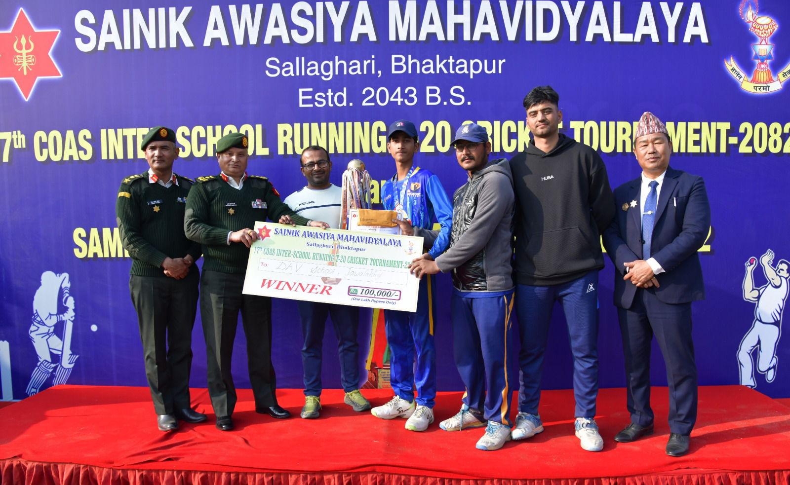 सैनिक आवासीय महाविद्यालय सल्लाघारी भक्तपुरको आयोजनामा आज सम्पन्न फाइनल खेलमा डिएभी स्कुल जाउलाखेलले नेपाल प्रहरी स्कुल साँगालाई ३० रनले पराजित गर्दै उपाधि जितेको हो ।