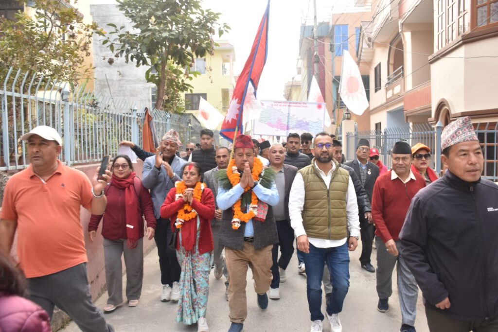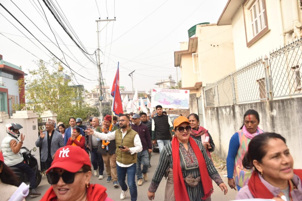महाभूकम्पले घरबार बिहिनहरुलाई लत्ता, कपडा, ओढ्ने ओछ्याउने, खाद्यान्नदेखि हजारौ जस्ताको टहरा बनाएर छतको व्यबस्था गरेको स्मरण गर्दै उहाँले जनताको सेवाबाट आफू कहिल्य नभाग्ने र बिना स्वार्थ जनताको सेवामा आफ्नो जीवन समर्पित गर्ने प्रतिबद्धता व्यक्त गर्नुभयो । उहाँले २०७४ देखि २०७९ सम्म आफू सांसद हँुदा गरेको विकासमा अझै अधूरा काम गर्न बाँकी रहेको स्मरण गर्दै उहाँले विगत तीन वर्षसम्म रिक्त भएको भक्तपुरको विकासलाई पूर्णता दिने मतदातामाझ प्रतिबद्धता व्यक्त गर्नुभयो ।