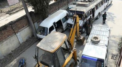 बनेपा । काभ्रेकाे बनेपा चार दाेबाटाेमा अाज पनि नयाँ बस राेक्न भन्दै पुरानाे बस ब्यवसायी