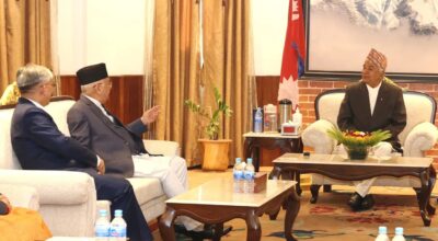 काठमाडौ: राष्ट्रपति रामचन्द्र पौडेल र प्रधानमन्त्री केपी शर्मा ओलीबीच आज राष्ट्रपति भवन, शीतल निवासमा भेटवार्ता