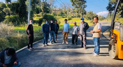 धुलिखेल, २१ कातिकः बनेपा नगरपालिकाको वडा नम्बर ६ कार्की गाउँदेखि गोसाँईस्थानसम्म सडक पिच भएको छ