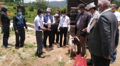 धुलिखेल, २७ जेठः काभ्रेको पनौती नगरपालिकाले किसानलाई उन्नत जातको बोका बितरण गरेको छ । नगरपालिकाको