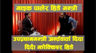 काठमाण्डाै, ३० बैशाखः नेपाल सरकार उपप्रधान तथा स्वास्थ्यमन्त्री उपेन्द्र यादव अन्र्तवार्ता दिदाँदिदै माइक फोलेर हिडेका
