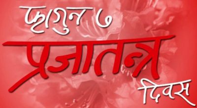 काठमाडौं ७ फागुन : मंगलबार ६९ औं राष्ट्रिय प्रजातन्त्रदिवस मुलुकभर विभिन्नकार्यक्रम गरी मनाएका छन् ।