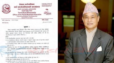 धुलिखेल, ५ बैशाखः तेमाल गाउँपालिकाले आफ्नो क्षेत्रभित्र प्रवेश गर्ने सबै नाकामा ढाँट राखेको छ । शुक्रबार पालिका प्रमुख समाल सिं तामाङ आफै पुगेर बोहोर दोभान, खहरेघाट, पचुवारघाट लगायतका स्थानमा ढाँट राख्न पुगेका थिए । पालिकाले बिहिबार एक सुचना निकालेर तेमालभित्र प्रवेश गर्ने १० वटा नाका सिल गर्ने निर्णय गरेको थियो । पालिकाले सबै नाकामा स्वयमसेवक…