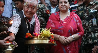 काठमाडौँ, २६ असोज:राष्ट्रपति विद्यादेवी भण्डारीको मैत्रीपूर्ण निम्तो मान्न दुई द्विवसीय राजकीय भ्रमणमा नेपाल आउनुभएका चिनियाँ राष्ट्रपति सी चिनफिङ नेपाली मौलिक नृत्यसहितको स्वागतमा मन्त्रमुग्ध देखिनुभएको थियो । नेपालमा झण्डै २२ घण्टा रहँदा नेपालीले गरेको स्वागत सत्कारमा उहाँको मुद्रा खुसी देखिन्थ्यो । आज स्वदेश फर्कनुअघि त्रिभुवन अन्तर्राष्ट्रिय विमानस्थलको अति विशिष्ट कक्षमा उहाँको बिदाइ स्वरुप आयोजना गरिएको मौलिक…