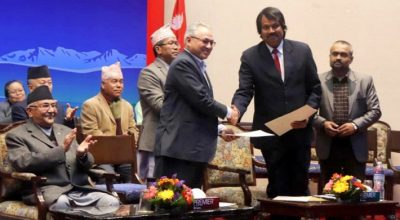 काठमाडौँ, फागुन २६ : नेपाल–भारत प्रबुद्ध व्यक्ति समूह (इपिजी)ले तयार गरेको प्रतिवेदनमा भारतको बिहार राज्य सरकारले केन्द्र सरकारसँग असहमति राखेको छ । इपिजी प्रतिवेदनमा उल्लेख खुला सिमाना कायम गर्ने, तर सीमा वारपार गर्दा दुवै देशका जनताले परिचयपत्र देखाउनुपर्ने व्यवस्थाप्रति बिहारले आपत्ति जनाएको हो । यो समाचार आजको नयाँ पत्रिका दैनिकमा पर्शुराम काफ्लेले लेखेका छन् ।…