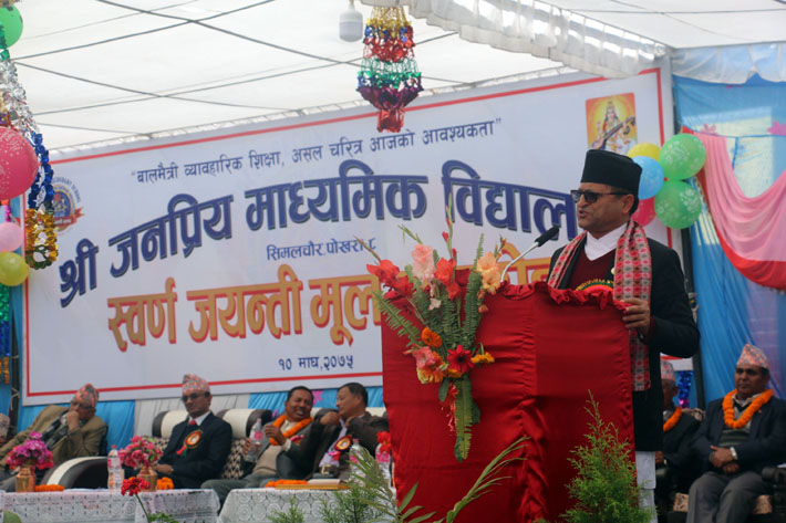 पोखरा, १० माघ: राष्ट्रियसभाका अध्यक्ष गणेश तिमिल्सिनाले मुलुकमा व्यावसायिक एवं प्राविधिक शिक्षाको आवश्यकता रहेको बताउनुभएको छ । जनप्रिय माध्यामिक विद्यालय पोखराको स्वर्णजयन्ती समारोहमा उहाँले गुणस्तरीय शिक्षाका लागि पाठ्यक्रममा सुधार गरेर अगाडि बढ्नुपर्ने बताउनुभयो । मुलुकका शैक्षिक संस्थाहरु बेरोगार जनशक्ति उत्पादन गर्ने थलोका रुपमा देखिएको बताउँदै अध्यक्ष तिमिल्सिनाले नेपाली समाज अनुकूलका प्राविधिक एवं व्यावसायिक शिक्षा विकास…