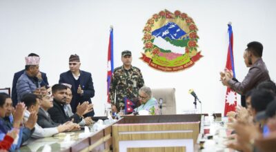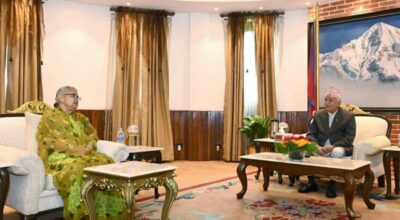 काठमाडौं । प्रधानमन्त्री सुशीला कार्की राष्ट्रपति रामचन्द्र पौडेललाई भेट्न शीतलनिवास पुगेकी छन्। सुरक्षा स्रोतका अनुसार सिंहदरबारमा बसेको मन्त्रिपरिषद् बैठक सम्पन्न भएपछि प्रधानमन्त्री कार्की सीधै शीतलनिवासतर्फ प्रस्थान गरेकी हुन्। शीतलनिवास पुगेपछि राष्ट्रपति पौडेल र प्रधानमन्त्री कार्कीबीच अहिले भेटवार्ता जारी रहेको स्रोतले जनाएको छ। उनीहरूबीच सरकारका समसामयिक विषय, राजनीतिक स्थिति र ताजा घटनाक्रमबारे छलफल भइरहेको अनुमान गरिएको…