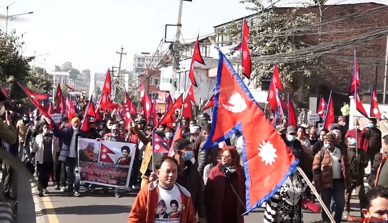 काठमाडौं, १८ मंसिर  कोभिडका कारण देशभर धर्ना, जुलुस, गोष्ठी सेमिनारमा बन्देज छ । तर, सडकमा प्रदर्शन जारी छ । त्यो पनि संविधानको मूल मर्म र भावना खारेजीको माग गर्दै । ०६२–६३ को क्रान्तिका मुख्य उपलब्धि गणतन्त्र, संघीयता र धर्मनिरपेक्षतामाथि धावा बोल्दै पुरातनवादीहरु चरणबद्ध प्रदर्शन गरिरहेका छन् । देशका मुख्य शहर धनगढी, जनकपुर, बुटवल, पोखरा, विराटनगरमा…