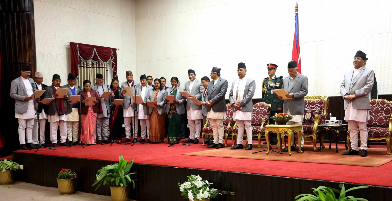 काठमाडौं । सरकारका नव नियुक्त मन्त्रीले पद तथा गोपनियताको शपथ लिएका छन् । शीतल निवासमा आयोजित विशेष समारोहमा राष्ट्रपति रामचन्द्र पौडेलले उनीहरूलाई शपथ ग्रहण गराएका हुन् । प्रधानमन्त्री पुष्पकमल दाहाल ‘प्रचण्ड’ ले पुनर्गठन गरेको मन्त्रिपरिषदमा नेकपा एमालेका सचिव समेत रहेका रघुवीर महासेठले प्रधानमन्त्रीपछिको वरीयता क्रममा उपप्रधान तथा भौतिक पूर्वाधार मन्त्रीको शपथ लिएका छन् । उनी…
